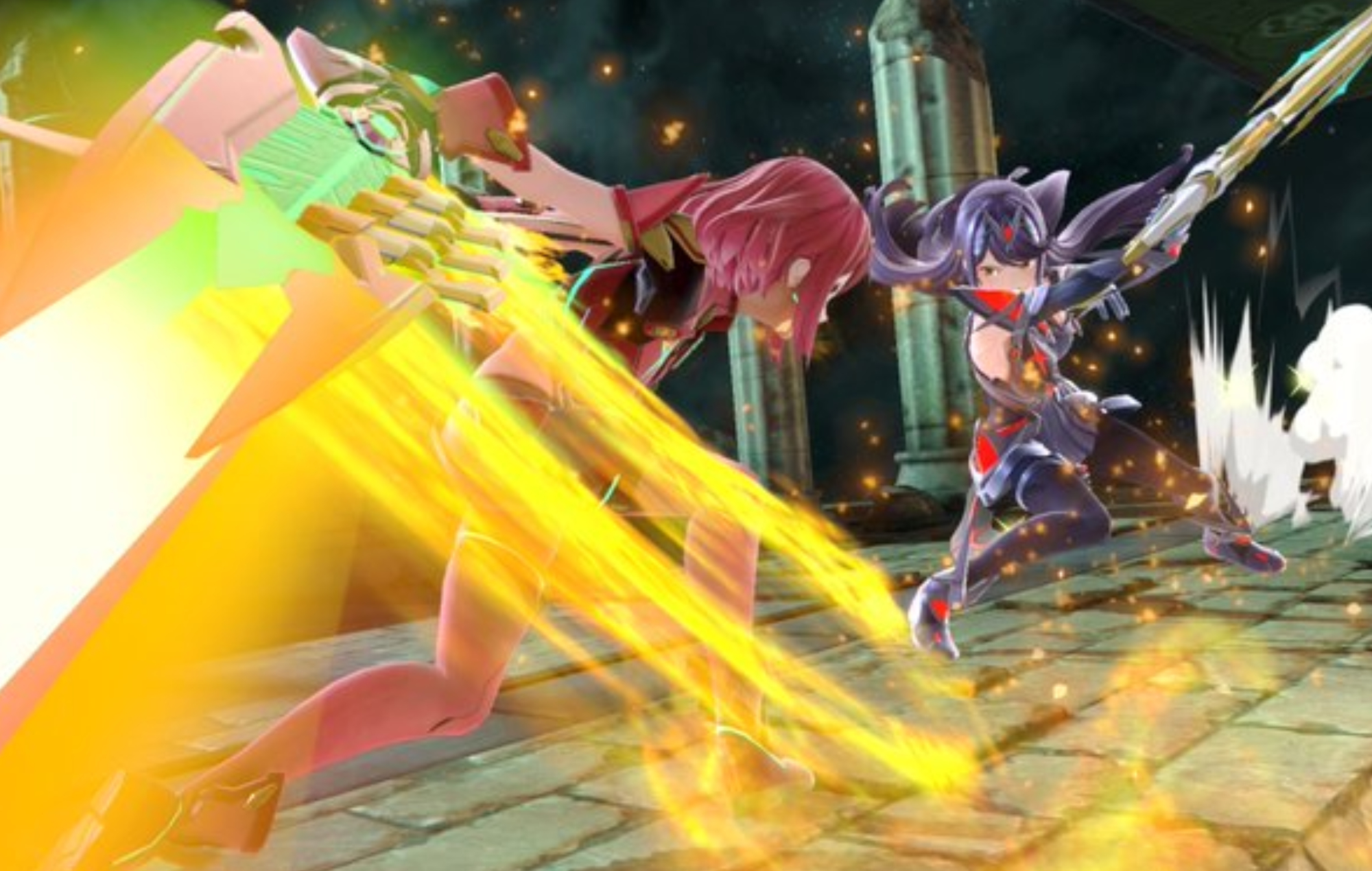 New screenshots from the upcoming Super Smash Bros. Ultimate DLC featuring Pyra and Mythra have been shared by the game’s director, Masahiro Sakurai on Twitter.